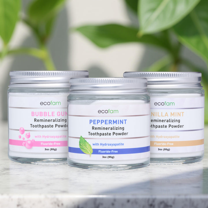 - REMINERALIZING TOOTHPASTE POWDER - Strengthen enamel and brighten your smile with the power of Ecofam's hydroxyapatite and xylitol, designed to support long-term oral health and fresh breath.